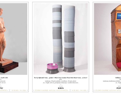 Suradnja Galerije Antuna Augustinčića i Akademije likovnih umjetnosti u Zagrebu već petnaestu godinu zaredom potvrđuje se kao plodonosna i svake godine rezultira izložbom talentiranih diplomanata kiparstva u prostoru klanječke Galerije.Ovogodišnja izložba predstavlja troje mladih koji kiparstvu pristupaju u skladu sa svojim vlastitim preferencijama: kroz oslonac na tradicionalnu figuraciju, novim tehnologijama koje potiču eksperimente i djelima imanentne socijalne provokacije.