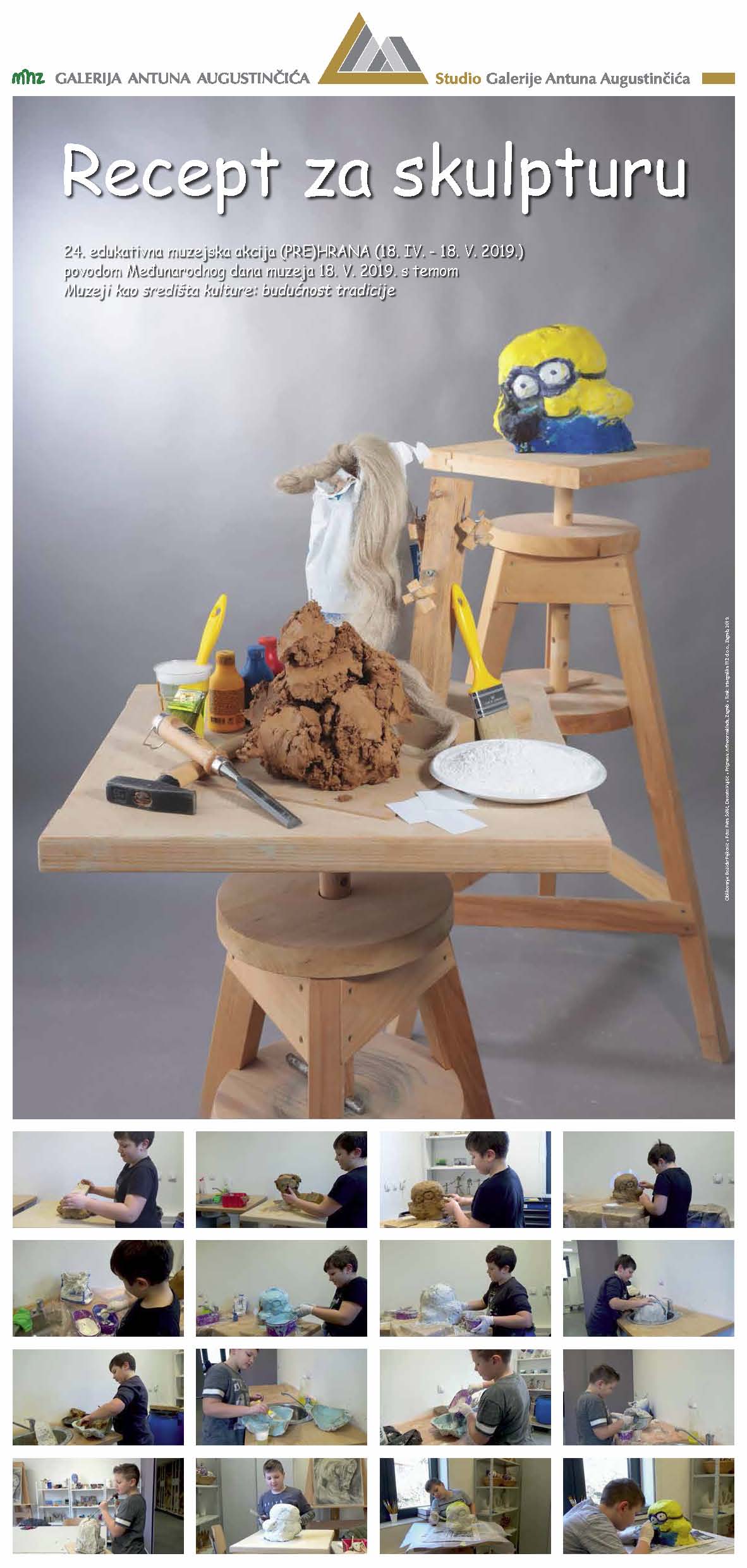 Shodno temi 24. edukativne muzejske akcije (Pre)hrana te temi Međunarodnoga dana muzeja 2019. Muzeji kao središta kulture: budućnost tradicije, muzejska pedagoginja Galerije Antuna Augustinčića Petra Šoltić je za skulpturoljupce priredila video recept za lijevanje u gipsu, koji je dostupan na interaktivnim kioscima u našoj Galeriji i Studiju, a i sažet u pratećem deplijanu.